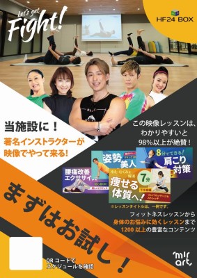 映像でのバーチャルレッスンプログラムです。スタジオのプロジェクターから大画面に映し出される、臨場感満載のレッスンをご提供いたします。初心者でも安心して参加していただけます。