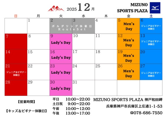 12月2日(火)3日(水)はルートセット日の為、休館日となっております。