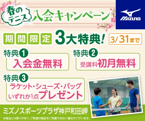 ご入会の方には、ラケット、シューズ、またはバッグの中からお好きな1点をプレゼントしちゃいます!