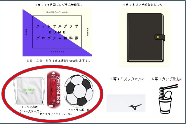3等:ゼログライドシューレース・モレリアシューズケース・フットサルボール