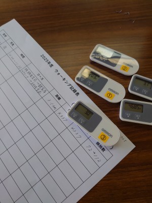 今回から一人ひとり歩数計を使用し、歩数と距離をウォーキング記録表に記入していきます👣