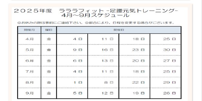 【ラララフィット 足腰元気トレーニング教室】ご案内♫