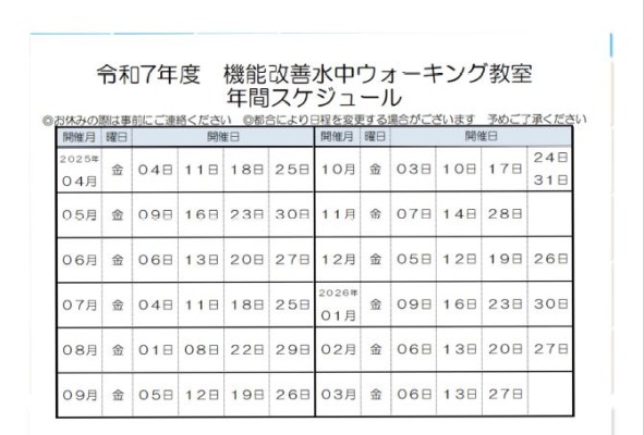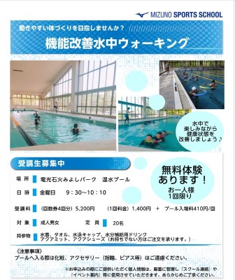 【持ち物】 水着・スイミングキャップ・タオル・水分補給用ドリング