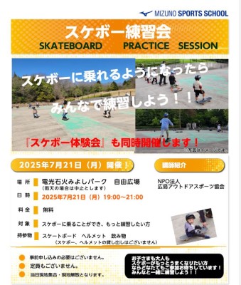 【 はじめてみよう!スケボー体験会VOL21】&【スケボー練習会】