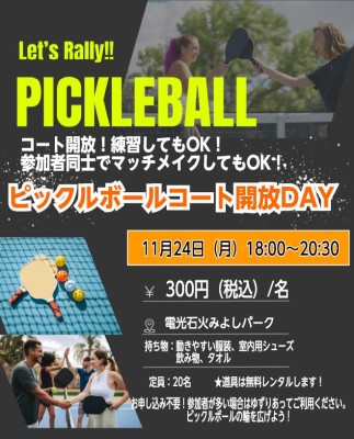 ◇◆11月ピックルボールボールコート開放DAY◆◇