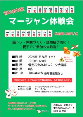 初心者対象【マージャン体験会🀄】開催!