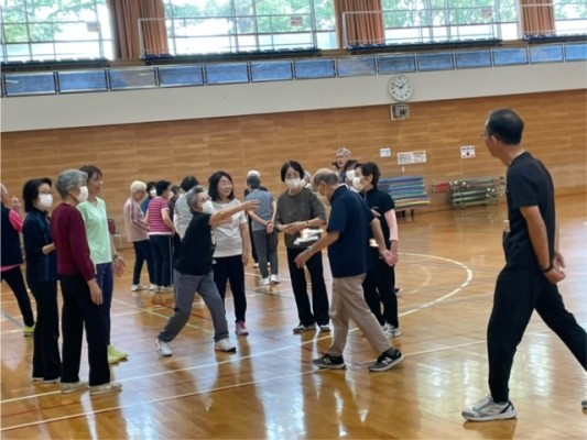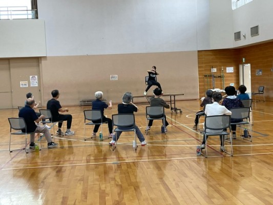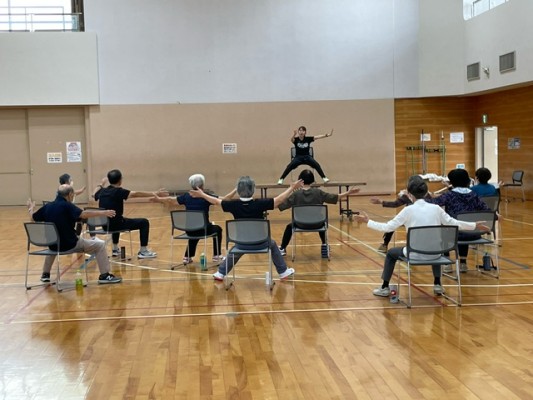 音楽に合わせてイスに座って有酸素の運動を行います💃