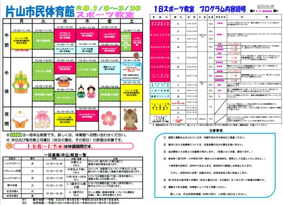 1月~3月主催スポーツ教室ご案内