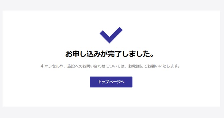 ➡申し込み完了画面が出てきたら予約完了です(`・ω・´)b
