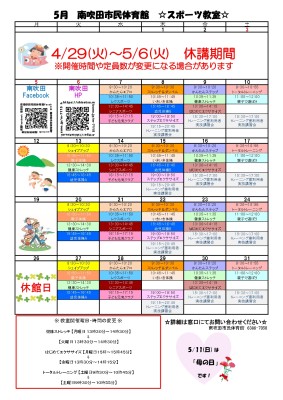 【5月教室カレンダー】