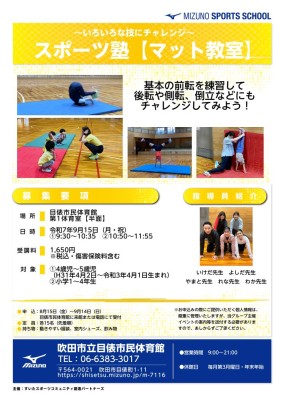 持ち物:運動できる服装、室内用運動靴、水筒、タオル