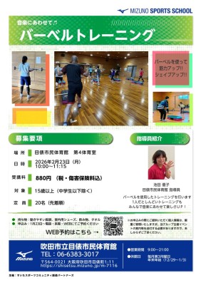 持ち物:運動できる服装、室内用シューズ、タオル、水筒