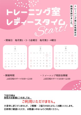 女性スタッフがトレーニング室でトレーニング相談会を開催します。