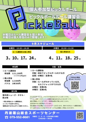 9月のピックルボールルール講習会・個人参加の開催日をお知らせいたします。