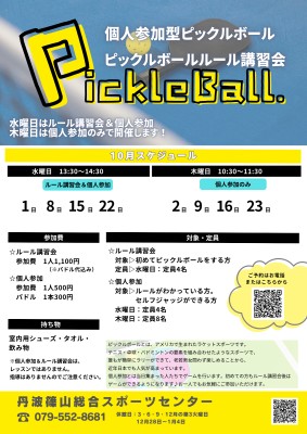 10月のピックルボールルール講習会・個人参加の開催日をお知らせいたします。