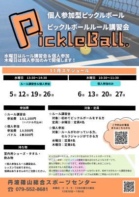 11月のピックルボールルール講習会・個人参加の開催日をお知らせいたします。