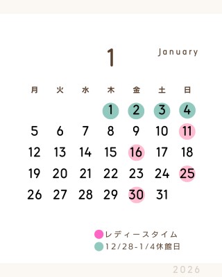 12月・1月のレディースタイム開催日をお知らせいたします。