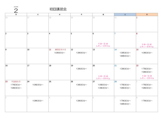 2月11日~3月10日までの初回講習会のお知らせです。