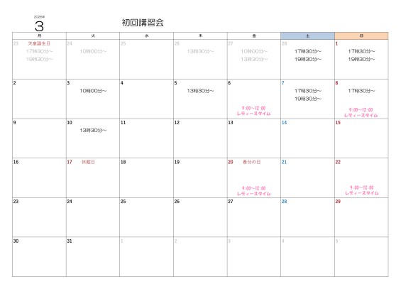(2月11日~3月10日)初回講習会のお知らせ
