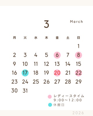 2026年3月のレディースタイム開催日をお知らせいたします。