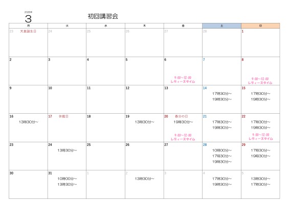 初回講習会のご予約・お問合せは丹波篠山総合スポーツセンターへお電話をお願いいたします。