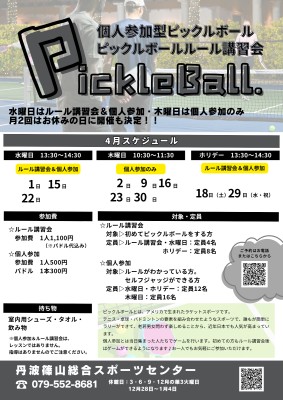 4月のピックルボールルール講習会・個人参加=個ピクの開催日をお知らせいたします。