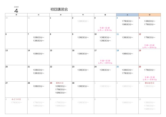 4月11日~5月10日までの初回講習会のお知らせです。