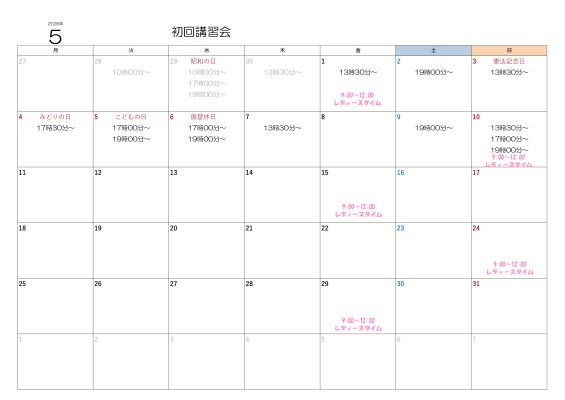 5月初回講習会開催日(5月1日~10日まで)