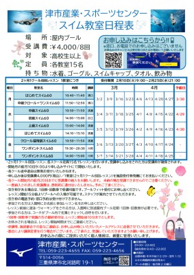 大人スイム教室 2026年3、4月クール スケジュール決定