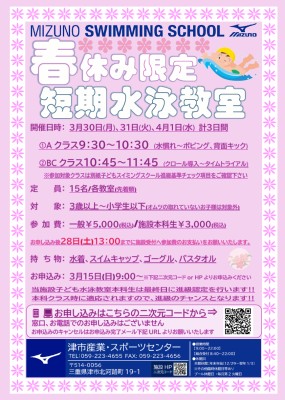春休み限定短期子ども水泳教室チラシ