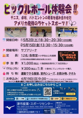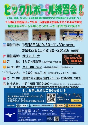 5月ピックルボール練習会、体験会に関してのお知らせ