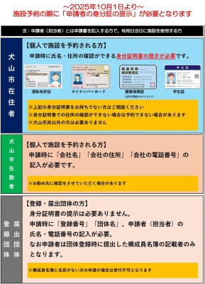 【2025年10月1日より】個人で施設を予約させれる際に身分証明書の提示が必要となります