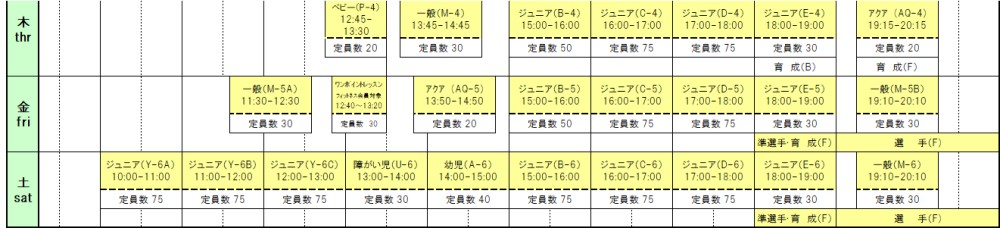 | 選手・育成 | F | コーチ推薦者 | - | 選手育成・競技力向上のため、より専門的な泳力指導を実施します。 |