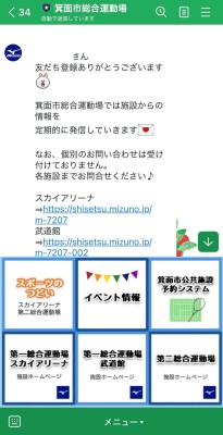 箕面市立第二総合運動場の3館共通の公式LINEができました!