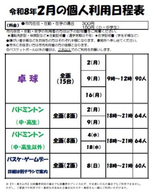 1月・2月個人利用のお知らせです。