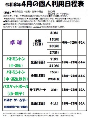 いつも古曽部防災公園体育館をご利用いただき、ありがとうございます。