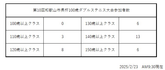 ~第10回和歌山市長杯100歳ダブルステニス大会開催~(2/23締め切りました)