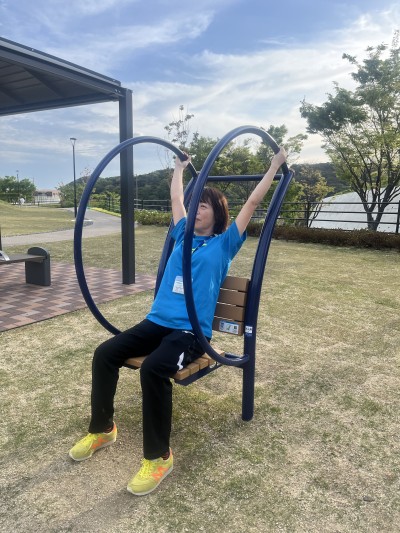 健康遊具を使い、いつまでも健康でいられるよう頑張っていきましょう!!