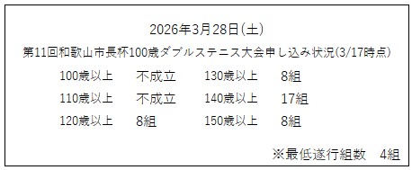 締め切りました~第11回和歌山市長杯100歳ダブルステニス大会開催~