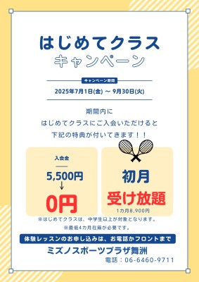 テニス未経験者向けの『はじめてクラス』をキャンペーン開催中!!