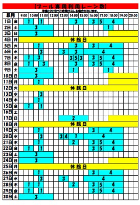 【8月14日更新・8月プール専用利用レーン数に関してのお知らせ】