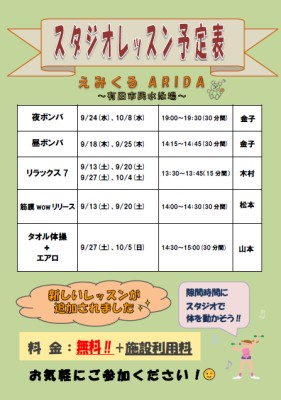 【不定期開催スタジオレッスン表】を配信させていただきます!