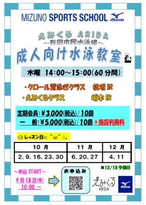 また、ご不明な点やご不安な点がございましたらえみくるARIDA有田市民水泳場までご連絡ください。
