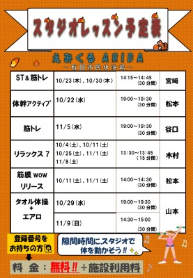 【不定期開催スタジオレッスン表】を配信させていただきます!