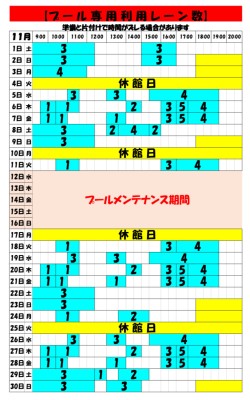 11月24日更新【11月プール専用利用レーン数に関してのお知らせ】