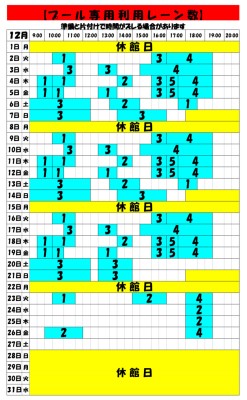 12月23日更新【12月プール専用利用レーン数に関してのお知らせ】