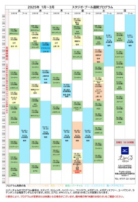 1月~3月の3か月分のスタジオ・プール週間プログラムを配信させていただきます。