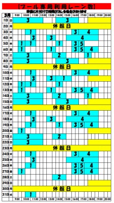 【3月プール専用利用レーン数に関してのお知らせ】