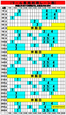 4月21日更新【4月プール専用利用レーン数に関してのお知らせ】