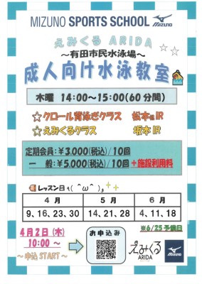 また、ご不明な点やご不安な点がございましたらえみくるARIDA有田市民水泳場までご連絡ください。